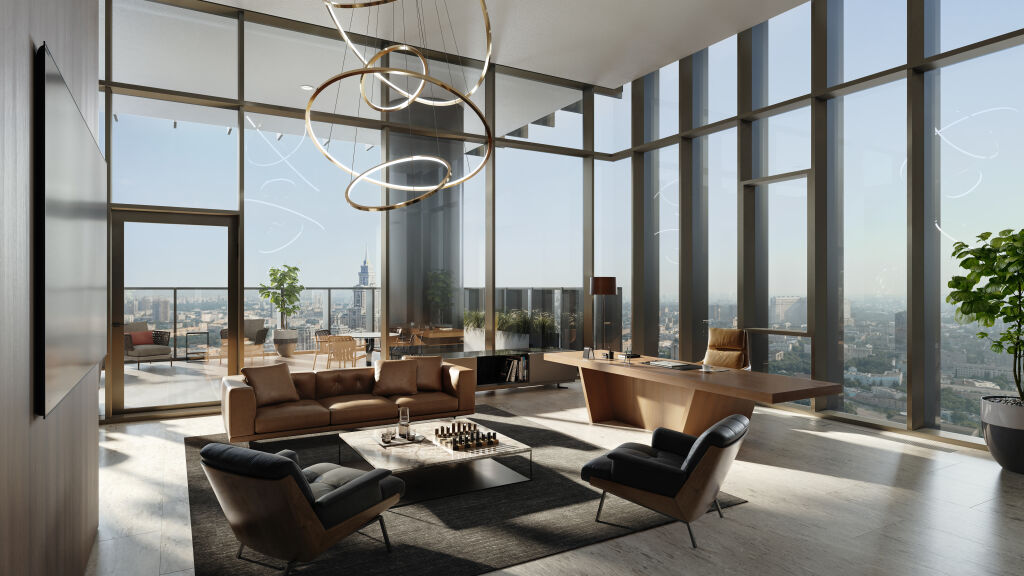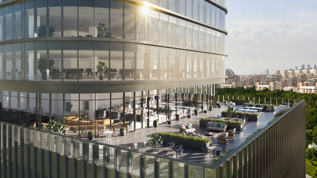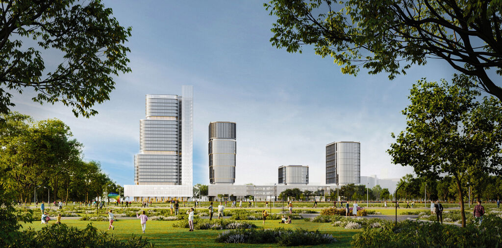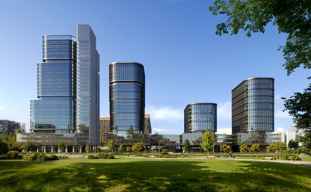 Архитектурный облик проекта разработан бюро Kleinewelt Architekten. Бизнес-центр представляет собой современное высотное здание L-образной формы, интегрированное в существующее и будущее архитектурное окружение. Благодаря максимальной высоте в 150 м проект станет архитектурной доминантой в городском пространстве в районе Ходынского поля. Основной объем офисов будет представлен тремя ступенчатыми блоками, опоясанными стеклянными этажами с террасами. Фасады в этих объемах имеют плотный графический рисунок, созданный сочетанием панорамного остекления и ламелей.
