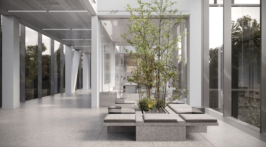 Территория вокруг офисного квартала свыше 5 тыс. кв. м будет благоустроена и станет продолжением парка «Ходынское поле»: здесь организуют проезды и тротуары, высадят кустарники и цветники, установят наружное освещение. На двух подземных уровнях оборудуют паркинг на 550 машино-мест с зарядными станциями для электромобилей и инфраструктурой для средств микромобильности.
