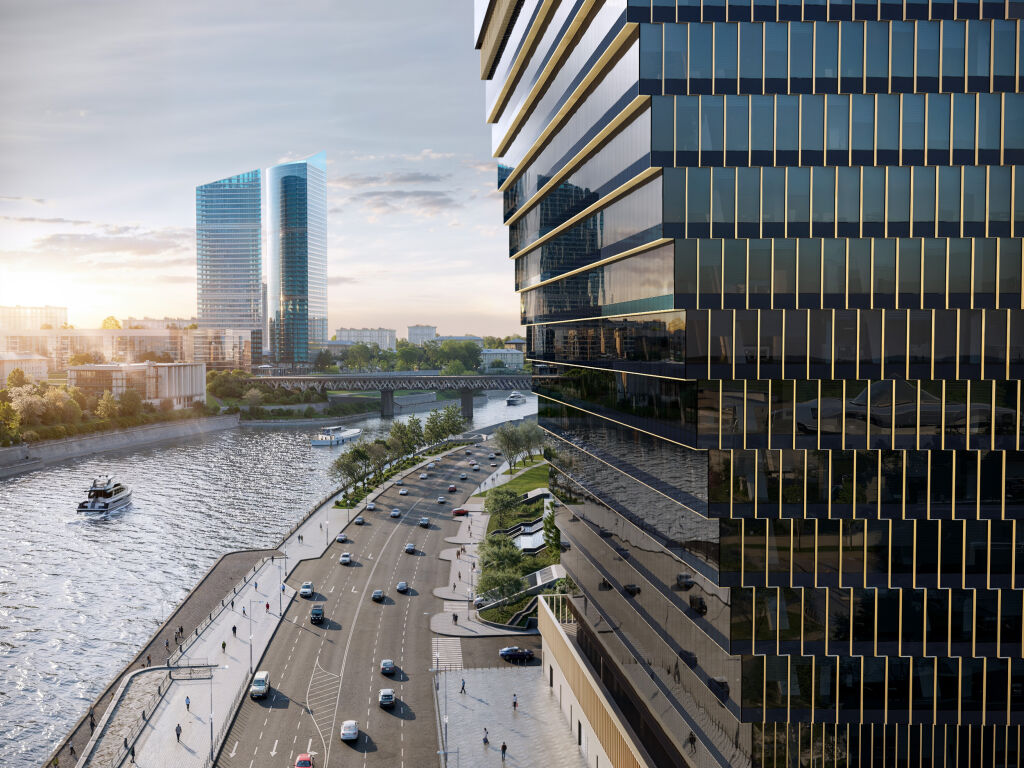 Комплекс находится на первой линии ММДЦ «Москва-Сити» и Краснопресненской набережной. Он дополнит и преобразит архитектурный образ Москва-Сити, став визитной карточкой за счет наклонного объема, визуально выдвинутого в сторону реки. Обращенный в сторону набережной главный фасад — ярусный. Ступени каждого из этажей организованы навесом друг над другом, формируя рост объема от основания ввысь.
